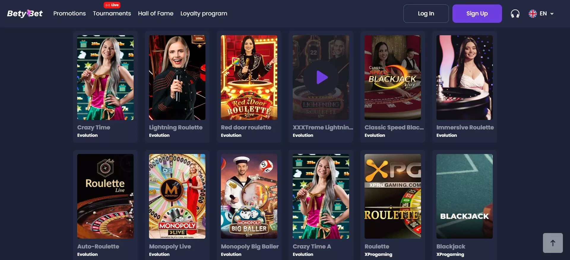 De Betybet casino online spellen bestaan vooral uit heel veel slots. Daarmee weet het zich te onderscheiden, want er zijn duizenden spellen. Dit is aangevuld met tafelspellen en een goed live casino. Speel bij Betybet online casino voor echt geld, maar vergeet ook zeker niet om eerst gratis software te proberen.