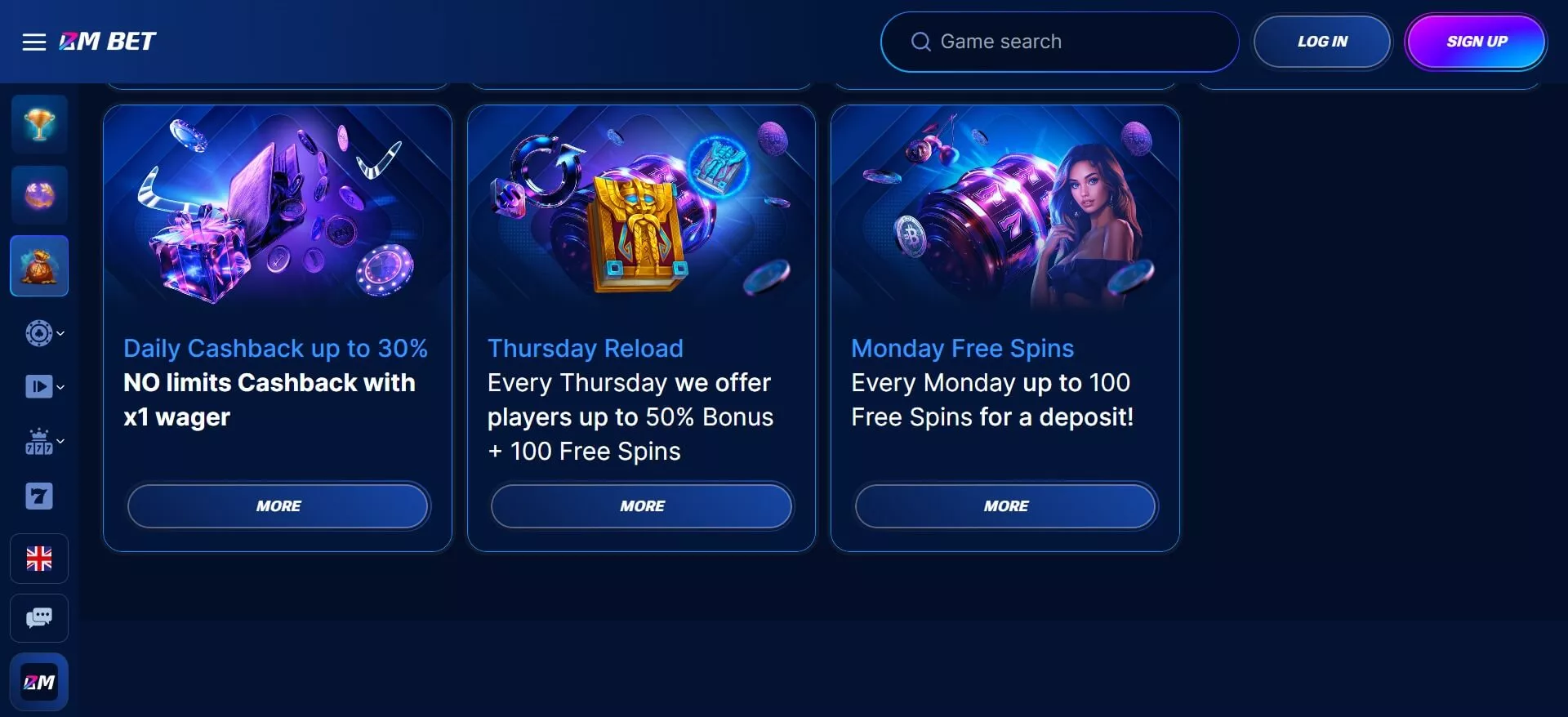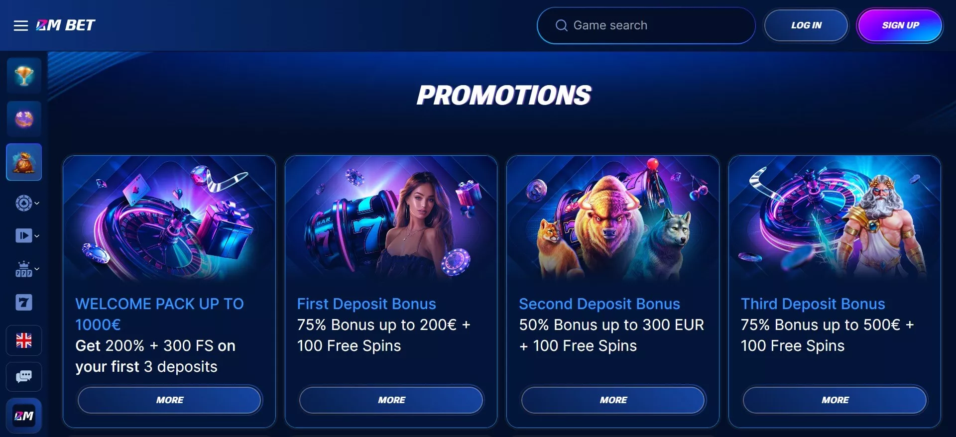 BM Bet is het nieuwste merk op de gokmarkt. Het casino biedt uitstekende bonussen en promoties, waaronder een vrij aantrekkelijke welkomstbonus van 200%, die kan oplopen tot 1000 EUR. Ze hebben ook een indrukwekkende selectie slotspellen en live casinotitels.